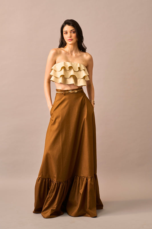 Chocolate Vanilla Melt – Ruffled Crop Top & Maxi Skirt Coordset for Women