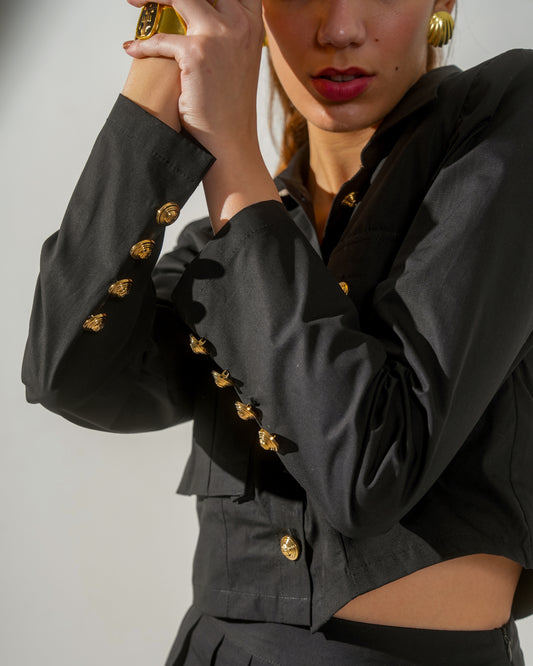 Suu Kyi Women's Black Military-Inspired Blazer and Pleated Mini Skirt Coord Set