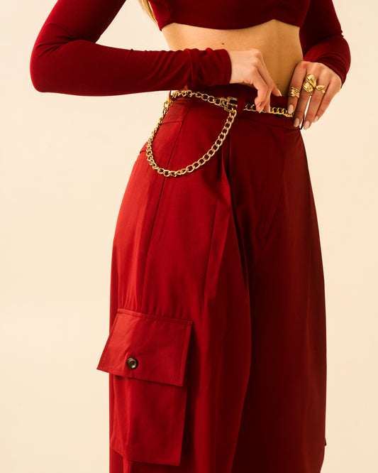 Velvet Flame Maroon Cargo Trousers for Women – Relaxed Fit with Utility Pockets