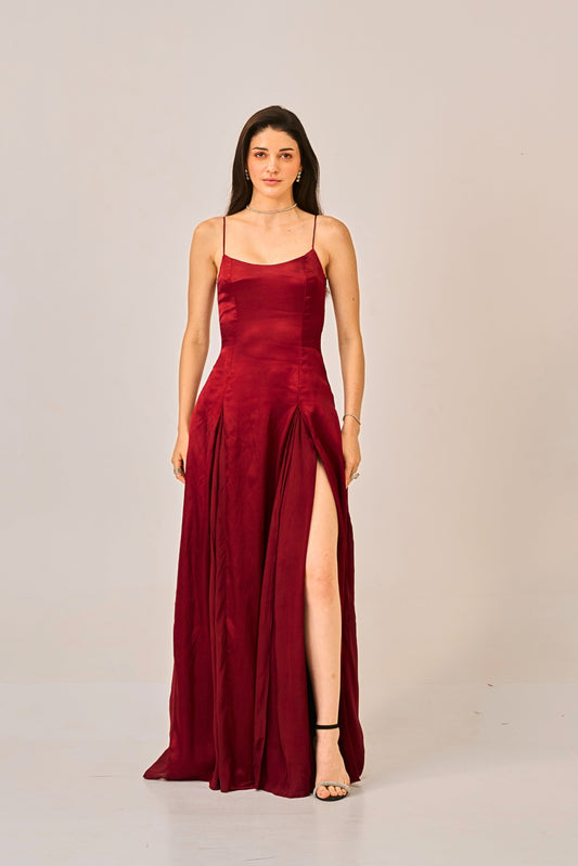 Dawn Dust Slit Gown for Women – Spaghetti Strap Maxi Dress