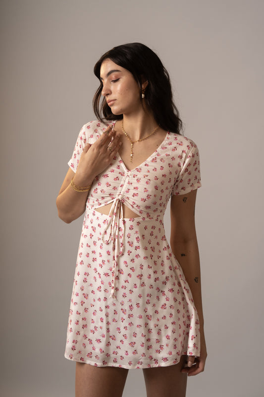 Ethereal Soul White Tie-Back Cotton Mini Dress for Women – Sweetheart Neck