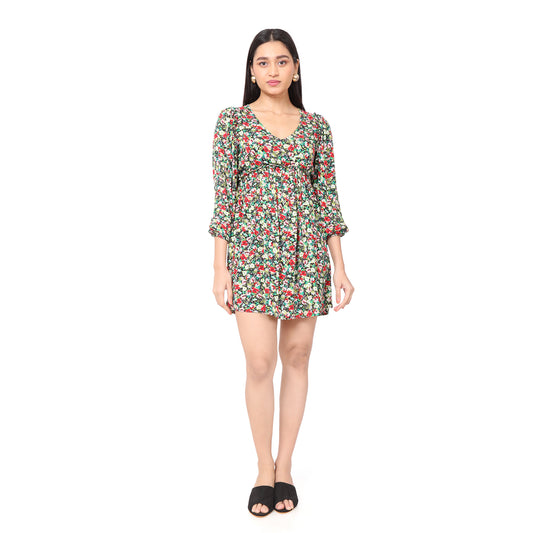 Wildflower Floral Sweetheart Neck Mini Dress for Women – Fit & Flare Summer Dress with Pockets