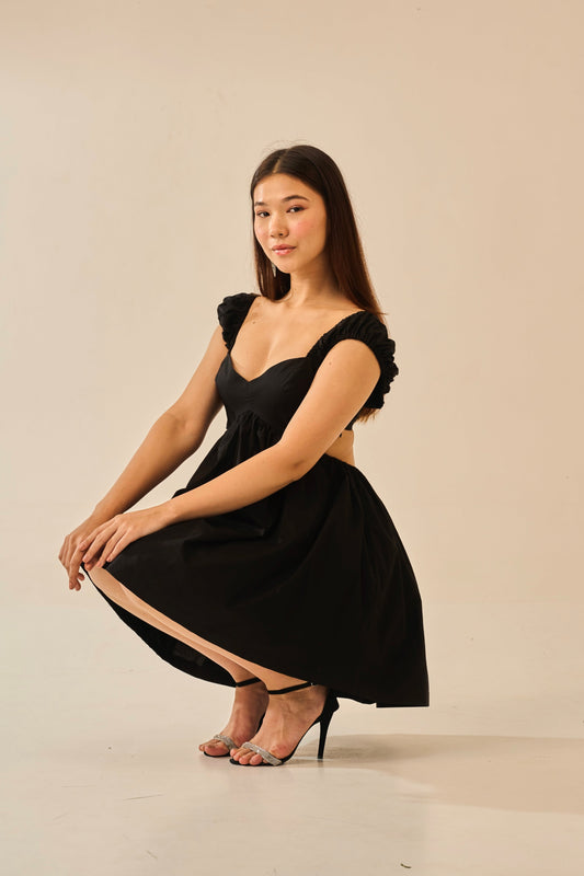 Charcoal Drizzle – Black Short Sleeve Poplin Mini Dress for Women