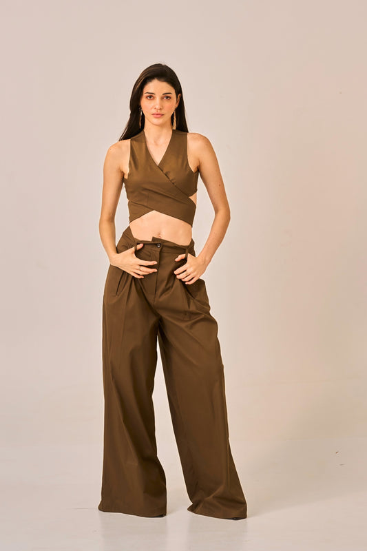 Cocoa Drape - Olive Brown Wrap Cross Crop Top