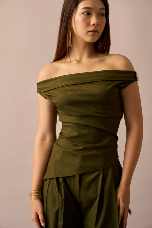Olive Clay Top - Draped One-Shoulder Top for Women