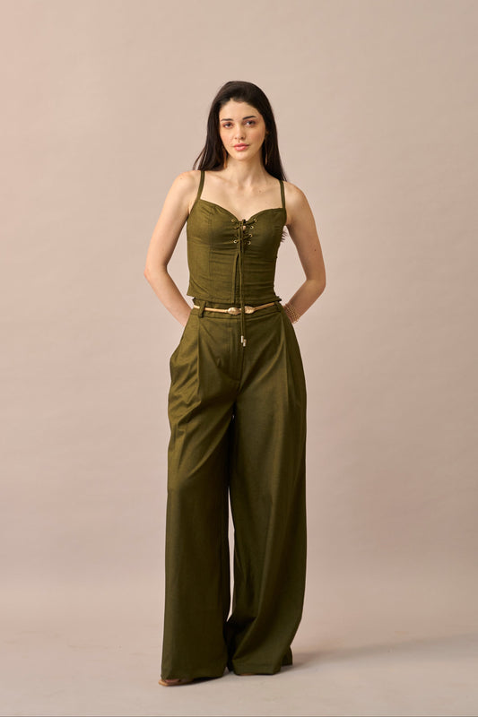 Olive Thread – Lace-Up Corset Style Fitted Top for Women