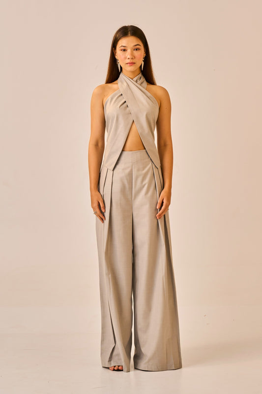 Quiet Current – Grey Halter Wrap Top for Women