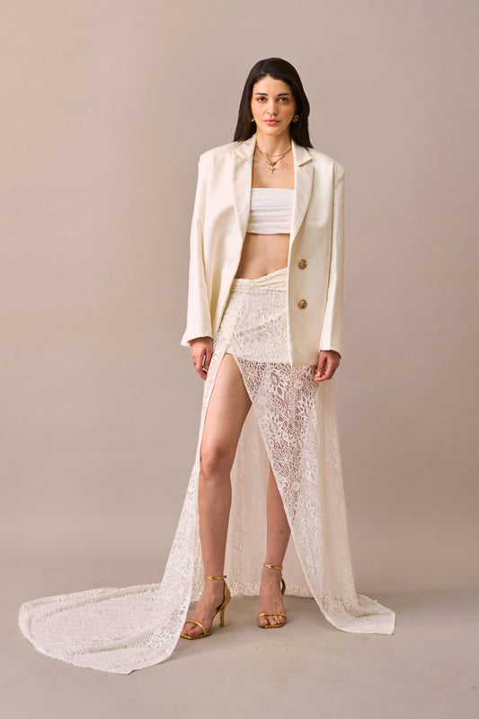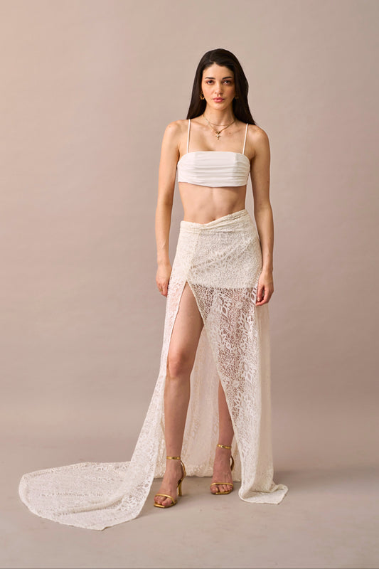Petal Light Top – Ivory Lace jacket with lycra tube top inner for Women