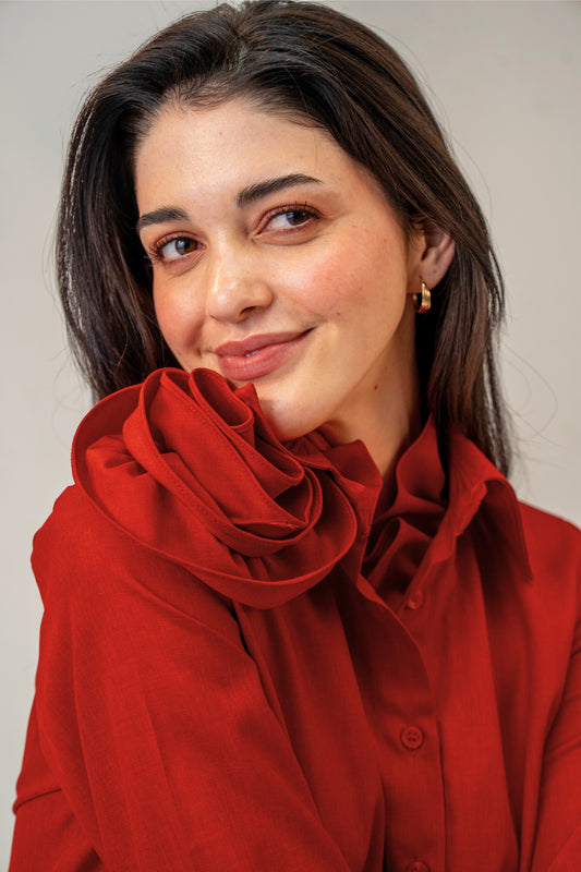 Love Affair Button Down - Sculpted 3D Handcrafted Rose Full-length Shirt for Women