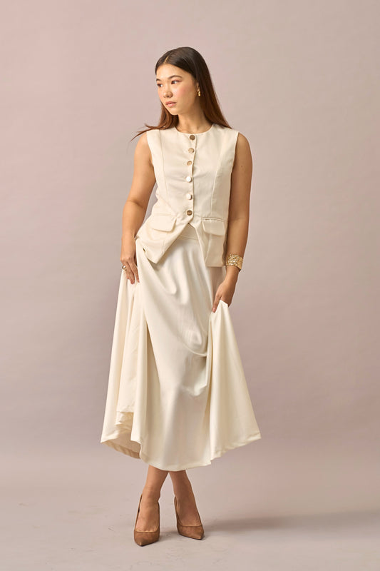 Ivory Hour - Tailored Waistcoat & Midi Skirt Two Piece Set for Women