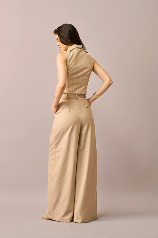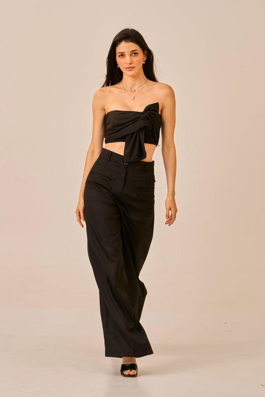 Knot Theory – Black Bandeau Crop Top & High Waist Flared Trousers Coordset for Women