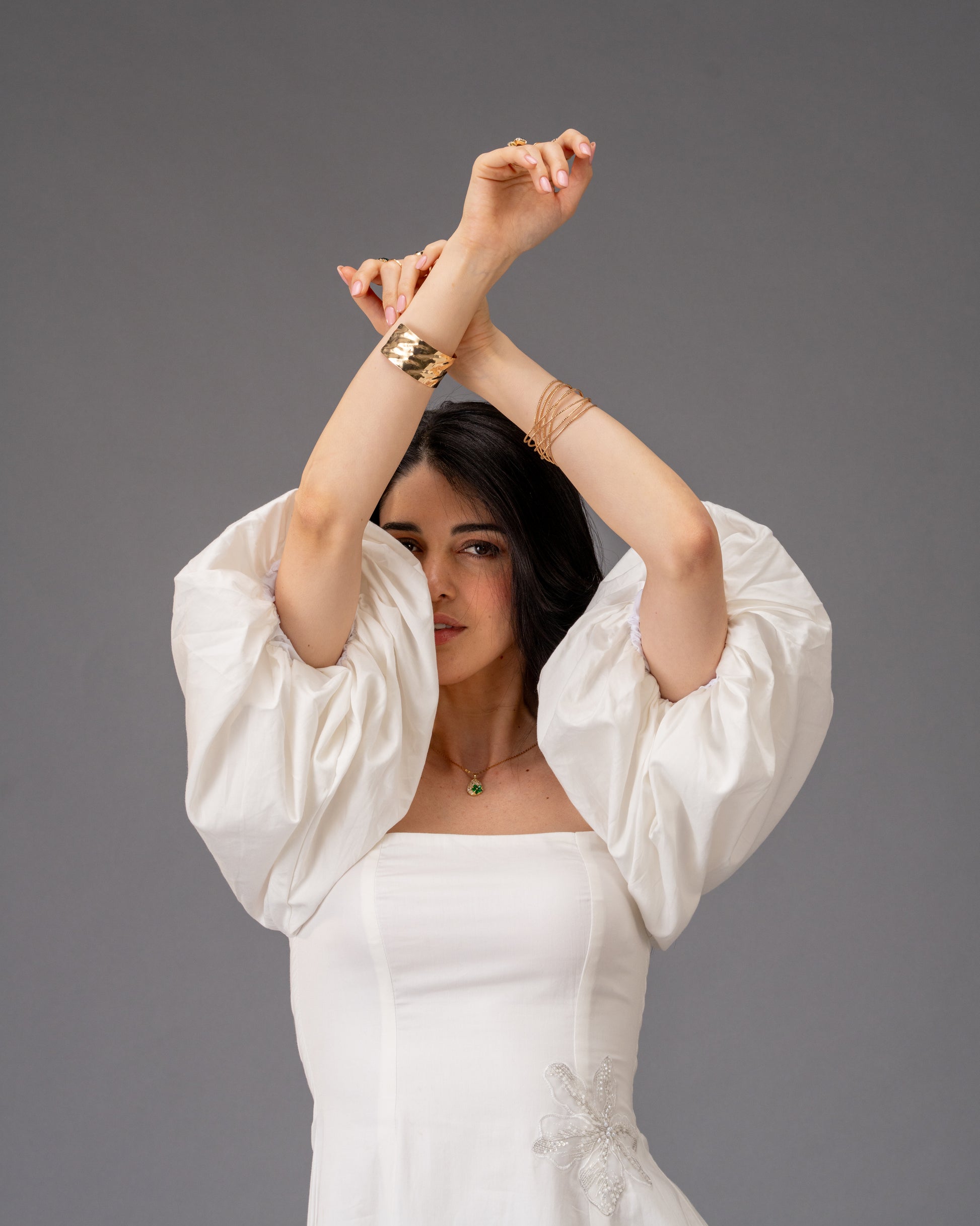 Understated yet striking, this is a piece that feels composed, feminine, and beautifully effortless — designed for evenings, occasions, and everything in between.